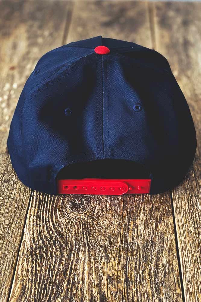 - Medium profile, snapback, flat bill