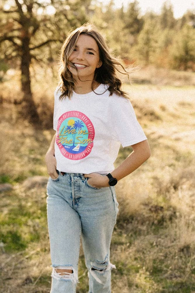 This Live In The Son, 80’s Tee, is inspired by Matt. 6:33, “but seek first His kingdom and His righteousness, and all these things will be given to you as well.” When you seek the Son, you experience the life you were meant to live….one full of love, joy, and peace!