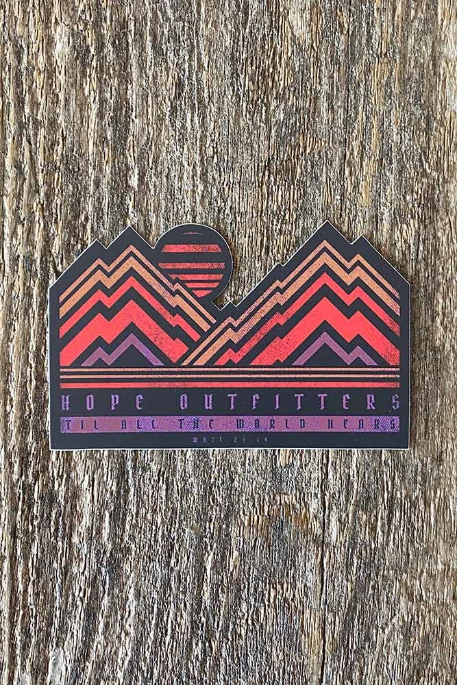Hope Outfitters, till all the world hears mountain sticker. And this gospel of the kingdom will be preached in the whole world as a testimony to all nations, and then the end will come. Mat. 24:14.